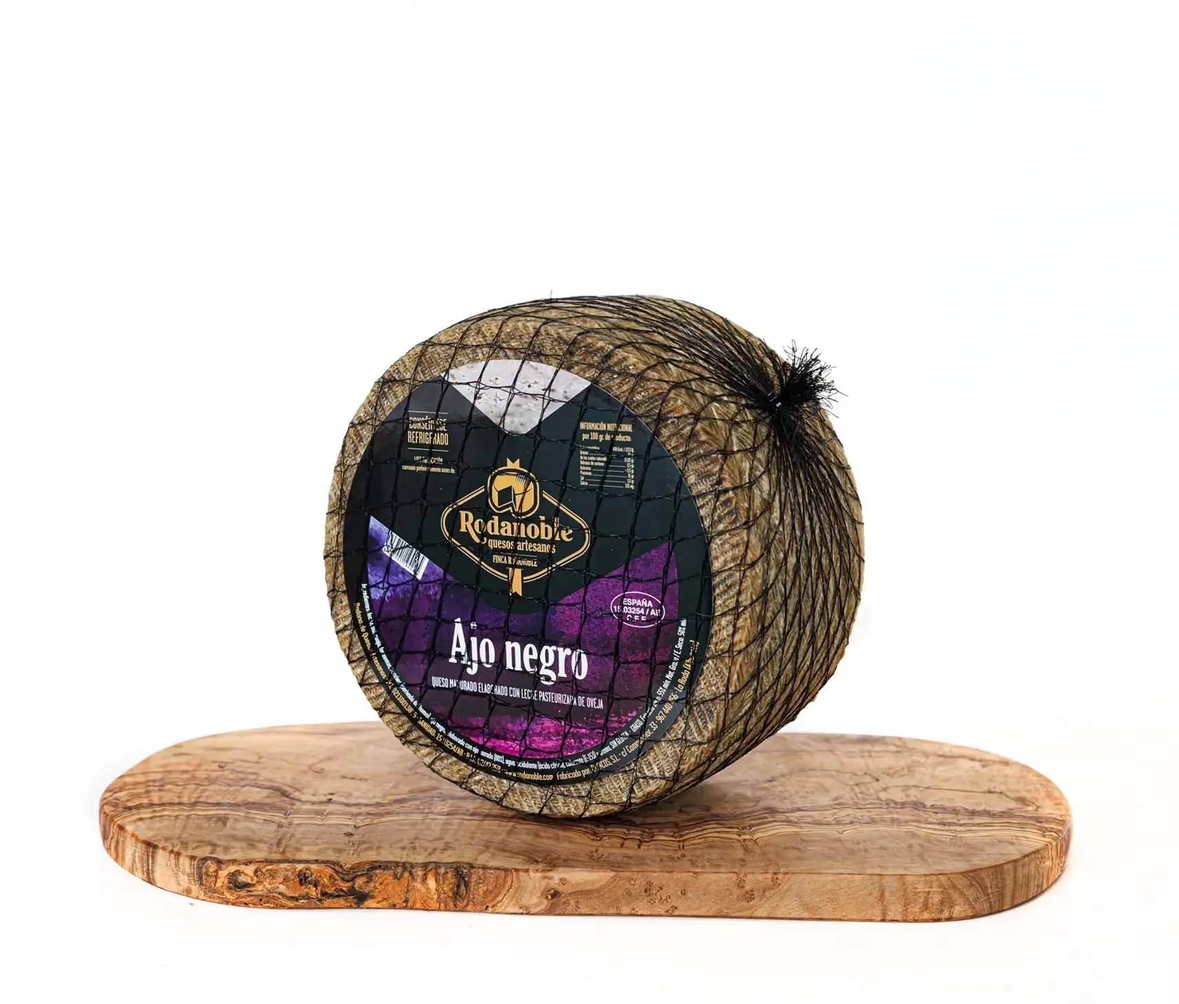 Geräucherter Manchego-Käse mit schwarzem Knoblauch.
